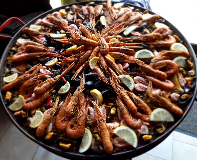 PAELLA plat traditionnel à base de riz et de fruits de mer, originaire de la région de Valence, en Espagne.